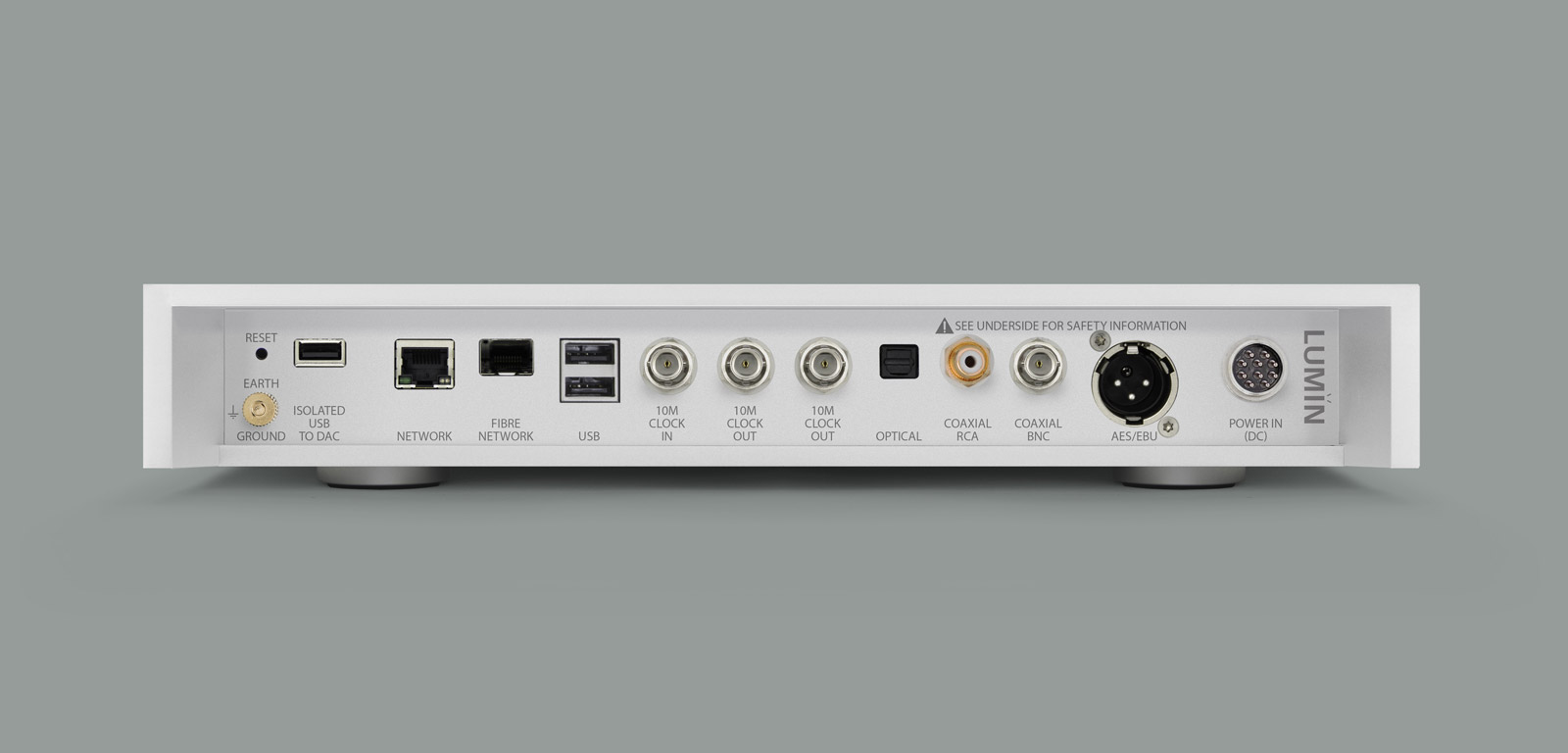 On the streaming menu, we retain the exceptional module developed in 2022, now compatible with more control applications, including the recent Qobuz Connect. Supported files are, of course, up to PCM 768 kHz /32 bits (we hope you’ll be able to find some natively for the time being…) and DSD512. To control volume directly via the Lumin, Leedh Processing is of course also always integrated, and as proof of the very high quality of the transport, it incorporates a 10MHz input and two output clock ports, to further limit jitter thanks to an external clock if desired. A ground terminal is also available, to perfectly purify this part too.