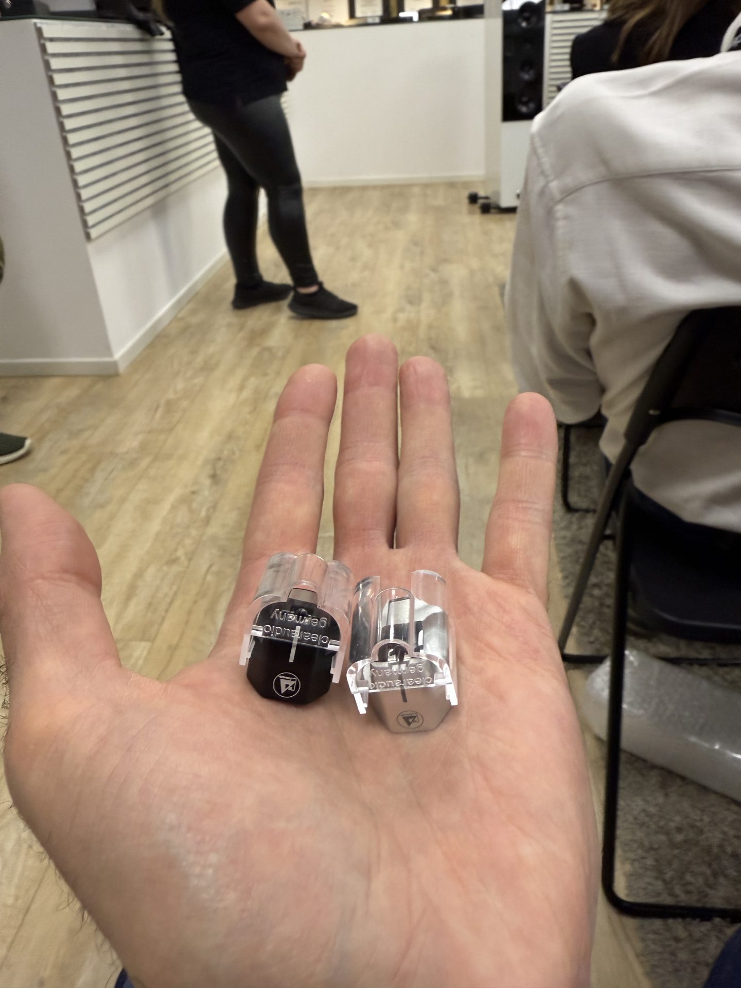 Thanks to this option, the RCA 1 line input also becomes phono, and can read MM and MC cartridges. A very promising rendering, from what we were able to judge on site at High End 2025, this card lets you choose between two gain levels per cell type (MM: low (+38dB) / high (+50dB); MC: low (+58dB) / high (+70dB)), as well as four capacitance levels for moving-magnet cells (50pF, 100pF, 150pF, 200pF) and five impedance levels for moving-coil cells (33 ohm, 50 ohm, 100 ohm, 150 ohm, 300 ohm).