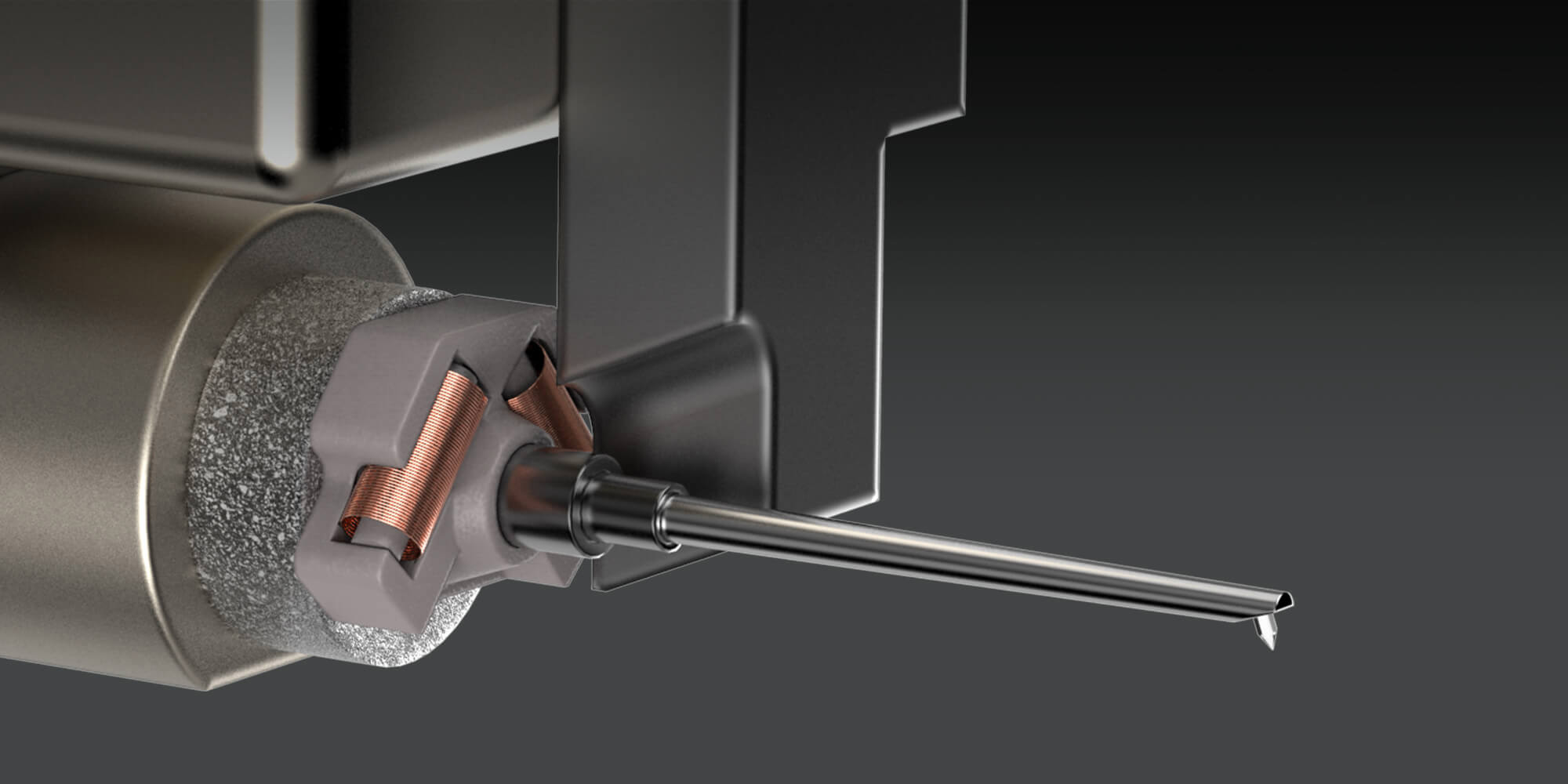 Made with PCOCC copper (Pure Copper by Ohno Continuous Casting), the coils are placed on either side of the support of the cantilever, which is made from duralumin on four of the five models and boron on the top-of-the-range model (AT33xMLB). On this latter, as on the previous model (AT33xMLD), they are fitted with a MicroLinear diamond stylus, which is elliptical (0.3 x 0.7 mm) on the first stereo cartridge in the series (AT33xEN) and conical on the two mono versions (AT33xMONO/I & /II).
