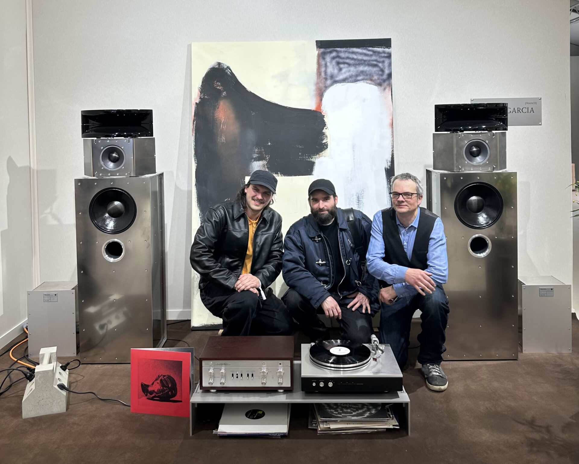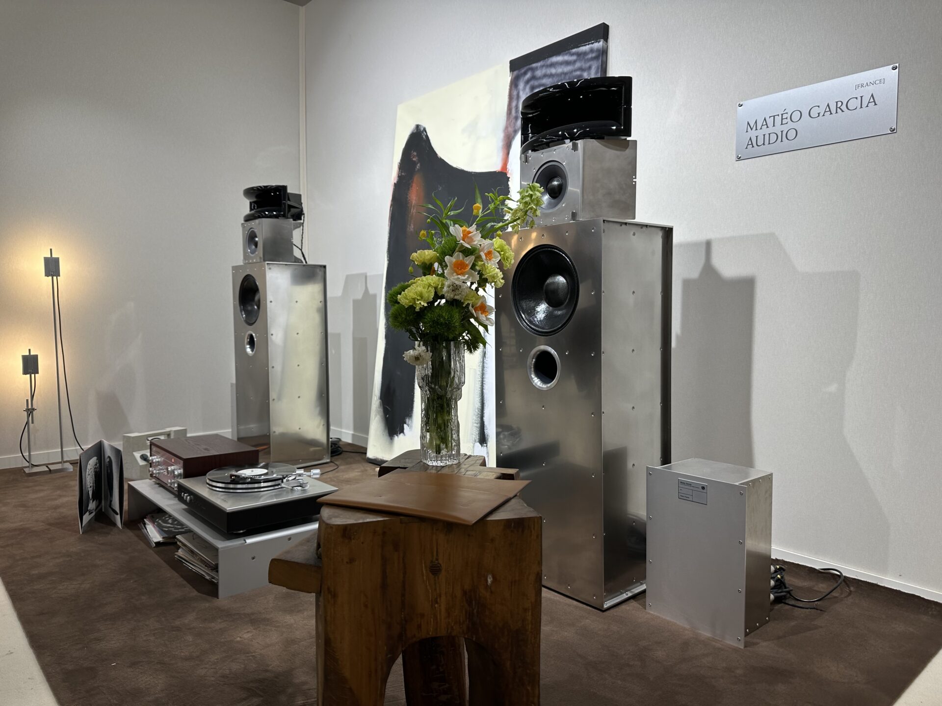 Matéo Garcia présente sur son stand le modèle Bonito, une enceinte active trois voies ambitieuse au design caractéristique des créations de l’artiste, avec une emprise au sol qui reste cette fois raisonnable, amplifiée par des blocs externes du créateur.
