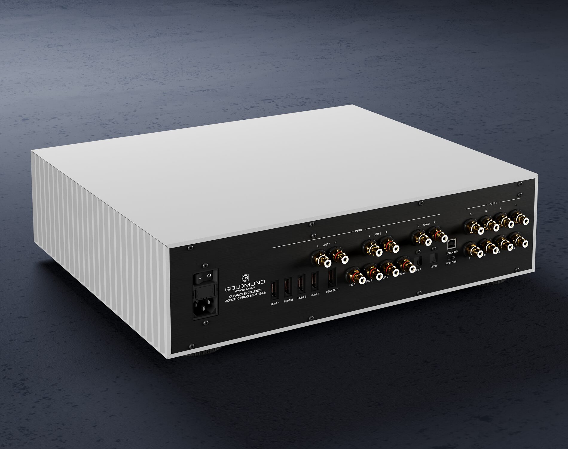 À la fois simplifiés et modernisés, les Ouranos intègrent les dernières avancées de la technologie Proteus HT exclusive au fabricant Suisse. Toutes les configurations multicanales sont générées par cet algorithme propriétaire et chargées dans le DSP du processeur. Lorsqu’elle est associée à des enceintes actives Goldmund, la technologie de correction temporelle Leonardo est directement intégrée au DSP de chaque enceinte, comme vous pourrez le lire dans notre banc d’essai des Asteria (test VU#59).